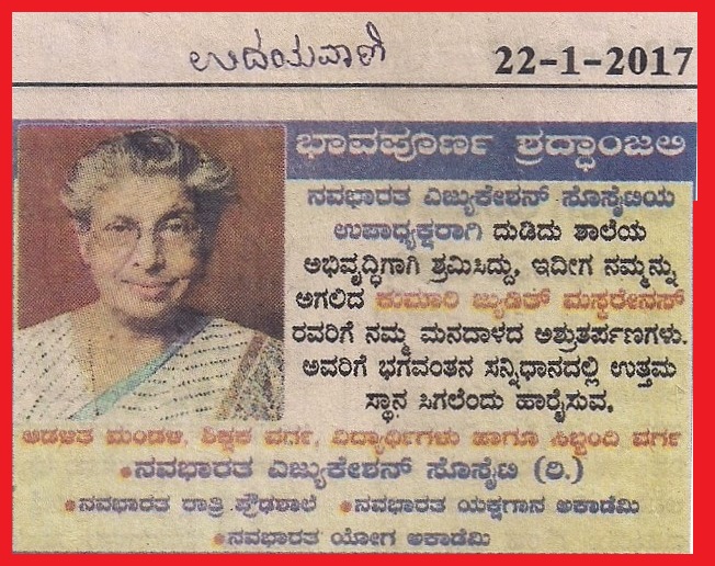 ಉದಯವಾಣಿ ಪತ್ರಿಕೆಯ ಶ್ರದ್ಧಾಂಜಲಿ: 9ನೇ ಜನವರಿ 2017